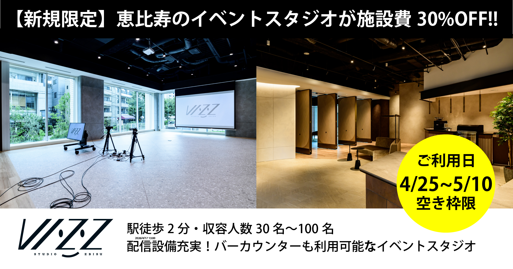 STUDIO VIZZ EBISUでは、新たなクリエイティブに挑戦する企業・団体様をサポートするため、「GWイベント・クリエイティブ応援キャンペーン」を実施いたします。